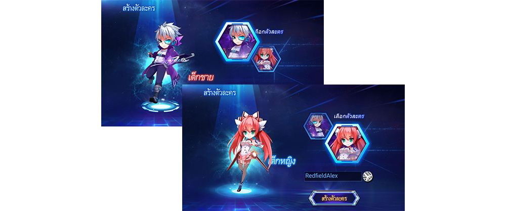 เปิดเกมมาระบบจะให้คุณ ตั้งชื่อ - เลือกเพศตัวละครระหว่าง "เด็กหญิง" และ "เด็กชาย" แล้วกดปุ่มสร้างตัวละคร เพื่อเข้าสู่เนื้อเรื่องและโหมดฝึกฝนการเล่นแบบยาวๆ ... [เนื้อหาช่วงนี้อ่านเพิ่มเติมได้ที่นี่ (คลิก)]