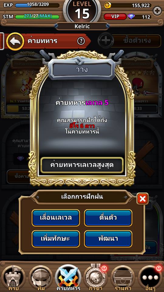 ๐ เลื่อนเลเวล - เพิ่มเลเวลตัวละครโดยการส่งไปฝึก
