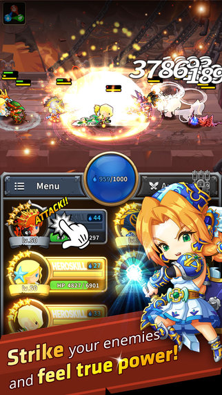 เข้าเกมมาก็เจอ RPG แบบพื้นฐานดังคาด แต่ภาพสวยสดใส และเดินตบกันตลอดเวลา ในฉากต่อสู้ผู้เล่นมีหน้าที่กดสกิลเท่านั้นเอง เล่นง่ายๆ ระบบอัพเกรดก็มีให้เล่นเยอะ ทั้งเลเวล ทั้งสกิล เพิ่มดาว ปลดลิมิต, ระบบตบชาวบ้านแย่งเงินก็เฮฮาใช้ได้