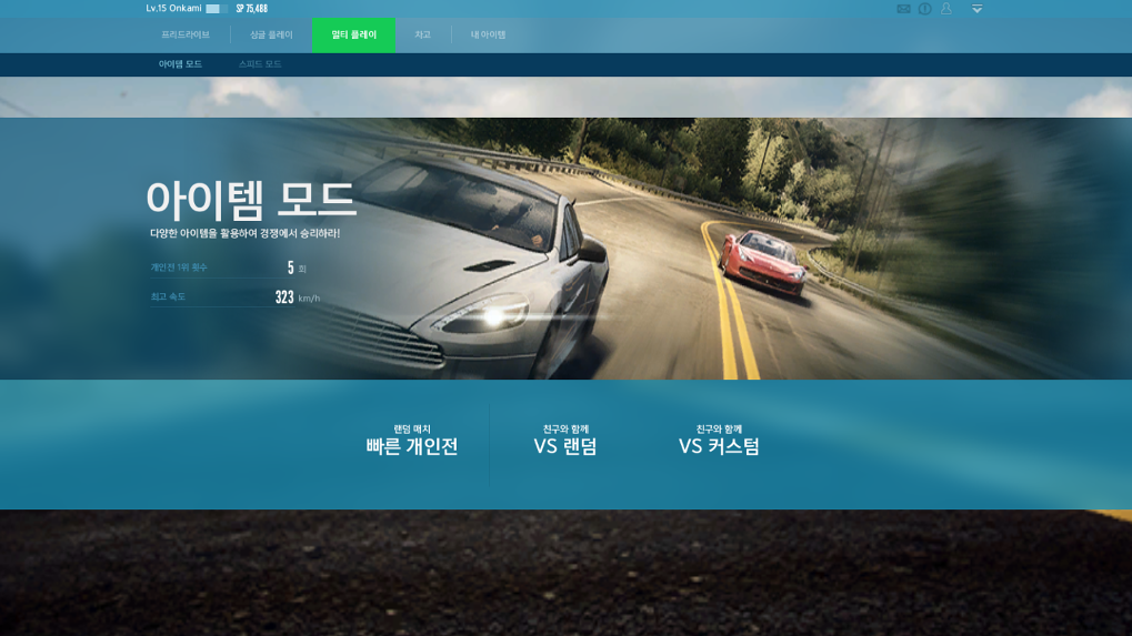 โหมดการเล่นแบบออนไลน์จะเน้นโหมด Sprint แข่งกันทางตรงเป้นหลัก โดยภายในการแข่งขันคือการประชันความเร็วกันตามปกติ แต่สิ่งที่พิเศษในการแข่งนี้ จะมีไอเท็มสุ่มตามรายทางของสนามต่างๆ ซึ่งไอเท็มก็จะมีทั้งแบบเพิ่มความเร็ว กลั่นแกล้งคู่แข่ง อย่างเช่น เทอร์โบไว้ใช้เพิ่มความเร็วของรถ รางตะปูวางพื้นเพื่อทำให้รถคู่แข่งยางแตก หรืออุปกรณ์ทำพายุเพื่อลดทัศนวิสัยการมองเห็น เป็นต้น ส่วนตัวโหมดนี้ถือว่าสนุกและบันเทิงดี แถมไอเท็มแต่ละอย่างนั้นก็ไม่เว่อร์หรือแฟนตาซีเกินไป มีความสมจริงอยู่บ้าง