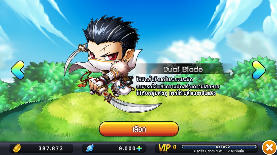 2.Dual Blade ดาบคู่ คลาสนี้ตัวละครจะเป็นเพศชาย ซึ่งดาบนี่สั้นมากจนผู้เขียนคิดว่าเป็นมีด(ซึ่งจริงๆมันคือมีดนั่นแหละ ผู้เขียนตาถั่วเพราะมีดมันยาว) สกิลการโจมตีเป็นระยะใกล้เกือบทั้งหมด ส่วนมากจะเน้นการแดชๆ พุ่งๆ กับหลบหลีก คลาสนี้จะดูสนุกมากถ้าได้ใช้จอยหรือคีย์บอร์ดเล่น แต่ถ้าเป็นหน้าจอโทรศัพท์คงไม่แนะนำ เพราะควบคุมยาก