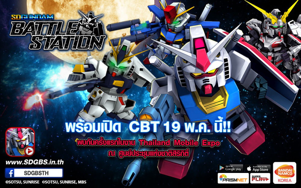 สาวก Gundam ไม่ต้องรอนานอีกต่อไปเมื่อ Bandai Namco Korea ร่วมมือกับ Superplay ค่ายเกมน้องใหม่ ประกาศเปิด Closed Beta เกม SD Gundam Battle Station ลิขสิทธิ์แท้จาก Bandai NamcoKorea วันที่ 19 พฤษภาคมนี้พร้อมสัมผัสความสนุกสุดมันส์ครั้งแรกได้ที่งาน Thailand Mobile Expo (Mobile Games Zone) ณ ศูนย์การประชุมแห่งชาติสิริกิติ์ 19-22 พฤษภาคม 2559 ลุ้นรับไอเทมพิเศษและของพรีเมี่ยมมากมาย ที่แฟน Gundam ห้ามพลาด !