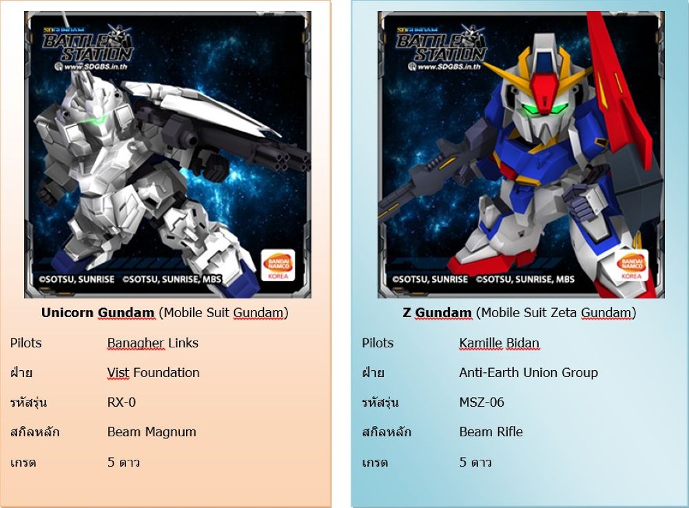 SD Gundam Battle Station เกมมือถือ Action RPG ลิขสิทธิ์แท้จากการ์ตูนซีรีย์ Mobile Suit Gundam ในหลายๆภาค ที่ผู้เล่นจะได้สวมบทบาทเป็นผู้บัญชาการ จัดทีมหุ่นรบ 3ตัวเพื่อออกไปโจมตีหุ่น NPC มีโหมดการเล่นมากมายทั้งPVE ที่มีมากกว่า 100 Stage โหมด PVP ต่อสู้ระหว่างผู้เล่น โหมดพัฒนา Station และโหมดฐานทัพโดยตัวหุ่นในเกมนั้นยังคงอรรถรสความเป็น Gundam ของแท้ และเพื่อเป็นการเตรียมความพร้อมก่อนมันส์ใน CBT มาทำความรู้จักตัวอย่างของตัวละครหุ่นรบในเกมกันก่อนเลย