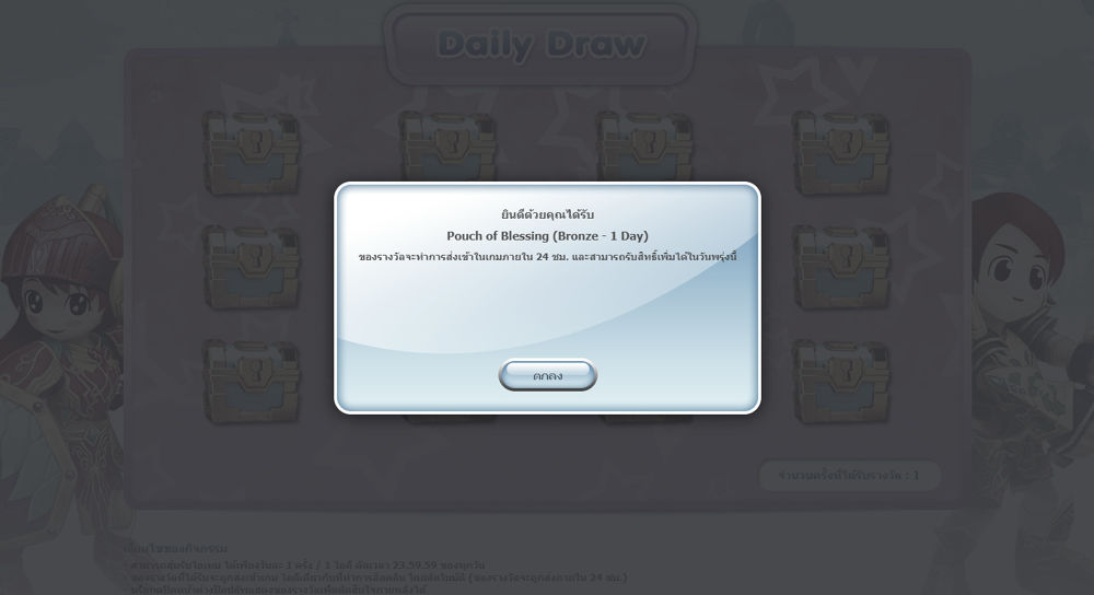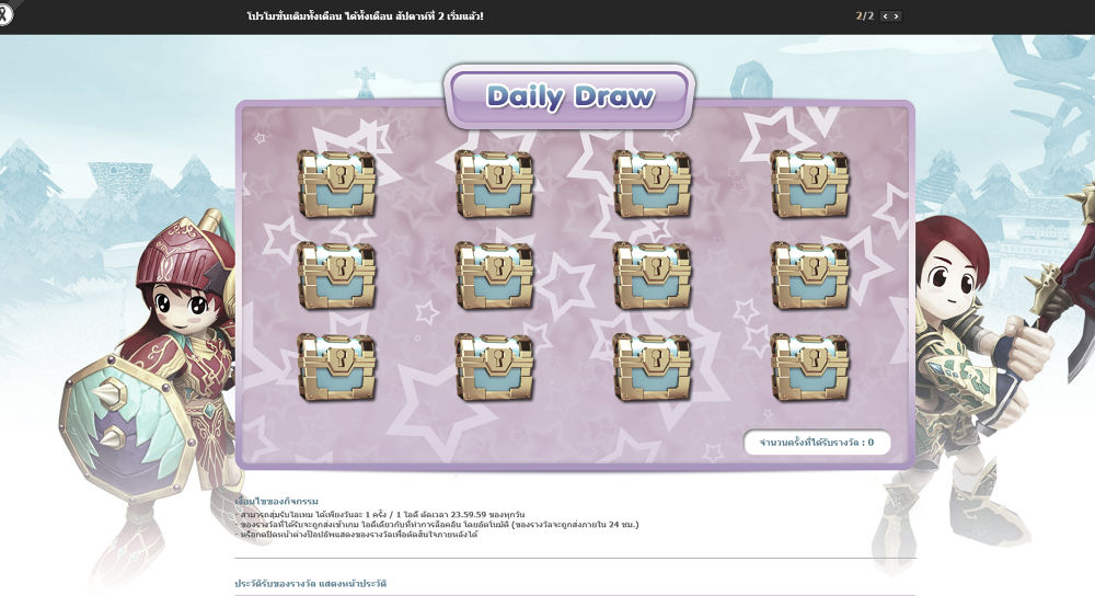 เมื่อเข้ามาในหน้าสุ่มของรางวัลจะเข้ามาในส่วมของการเปิดหีบสมบัติ