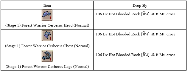 2. หาชิ้นส่วน Forest Warrior Cerberus (ระดับธรรมดา) ของส่วนที่ต้องการอัพเกรดให้เป็นอุปกรณ์ขั้นสูง ได้แก่