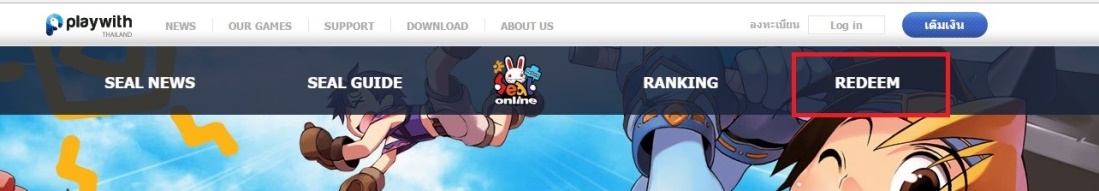 ขั้นตอนที่ 2 : กดปุ่ม REDEEM เพื่อเข้าสู่หน้ากรอก ไอเทมโค๊ด