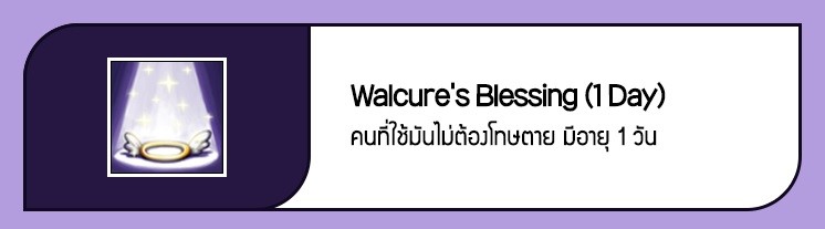 1. Return ลงทะเบียนเรียบร้อยรับรางวัล Walcure’s Blessing (1Day) 10 ชิ้น และสามารถกดร่วมกิจกรรม Together , Friends , Recommend เพื่อรับไอเทมเพิ่มได้