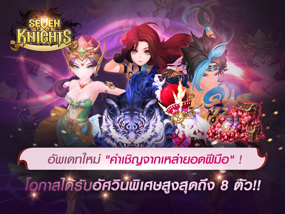เน็ตมาร์เบิ้ลเกมส์ประกาศอัปเดตครั้งใหญ่ของเกม Seven Knights ที่จัดหนักจัดเต็มด้วยโหมดใหม่ “คำเชิญจากเหล่ายอดฝีมือ” ให้เหล่าผู้กล้าได้มาท้าประลองกับอัศวินยอดฝีมือจากชาติต่างๆ พร้อมด้วยอัศวินพิเศษคนใหม่แห่งไนท์โครว “ออร์ลี่” ที่จะมาทำให้โลกแห่ง Seven Knights ต้องสั่นสะเทือน