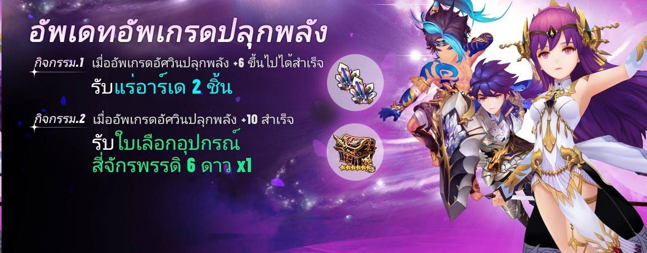 สำหรับระบบอัพเกรดปลุกพลังอัศวิน สามารถอัพเกรดสูงสุดได้ถึงระดับ +10 ผู้เล่นสามารถอัพเกรดอัศวินปลุกพลังได้ทั้ง คาริน, อีวาน, พยัคฆ์เมฆา และอัศวินปลุกพลังอื่น ๆ อีกเพียบที่กำลังจะตามมาเร็ว ๆ นี้ โดยสามารถเพิ่มระดับความแข็งแกร่งจาก +5 เป็น +10 ได้เลย อีกทั้งยังเพิ่มระดับความยากในคอนเทนต์สงครามชิงปราสาท ให้ผู้เล่นทุกคนได้สนุกไปกับความแข็งแกร่งของอัศวินที่เพิ่มมากขึ้นอีกด้วย