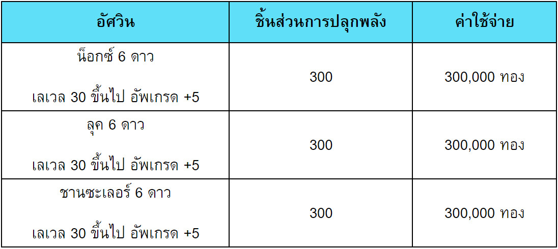 เพิ่มอัศวินปลุกพลังคนใหม่ น็อกซ์, ลุค และชานซะเลอร์ พบกับอัศวินที่แข็งแกร่งขึ้นจากการปลุกพลัง แล้วอย่าลืมเข้าร่วมกิจกรรมต้อนรับการปลุกพลังกันเยอะๆ นะครับ