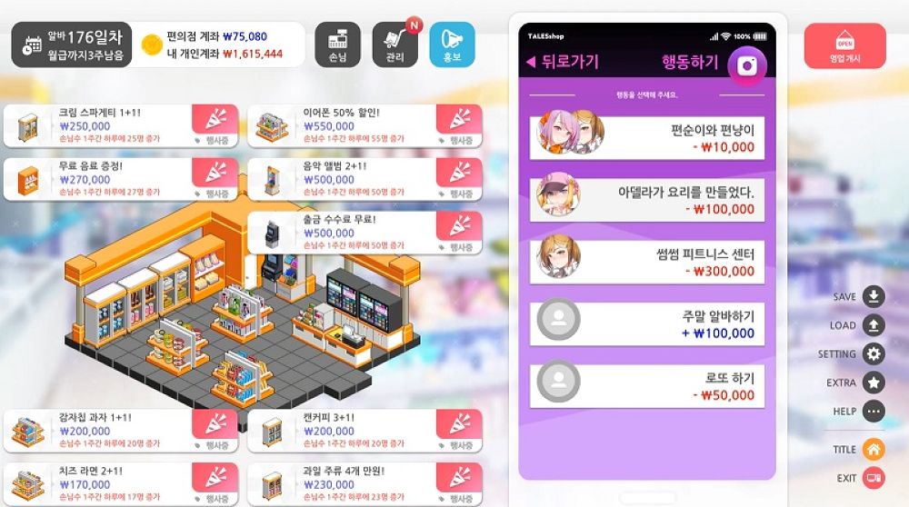 ซึ่งมอบความอิสระในการจัดเรียงสินค้าในชั้นวางของ, จัดเตรียมเครื่องดื่มให้มาจับจ่าย รวมถึงอัพเกรดคุณภาพของสินค้าต่างๆ ให้มีความสดใหม่อยู่ตลอดเวลา จากนั้นก็ให้คอยต้อนรับลูกค้าที่เข้ามาจับจ่ายใช้สอย พอหมดวันปุ๊บก็ทำการปิดร้านแล้วสรุปยอดกำไร / รายได้ในแต่ละวันว่าเป็นอย่างไร?