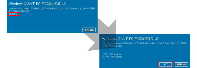 สำหรับผู้ใช้ Windows 10 บางรุ่นอาจต้องกดยอมรับงานติดตั้งโดยกดปุ่ม "Detailed information" (詳細情報) จากนั้นกดปุ่มยอมรับทางซ้าย
