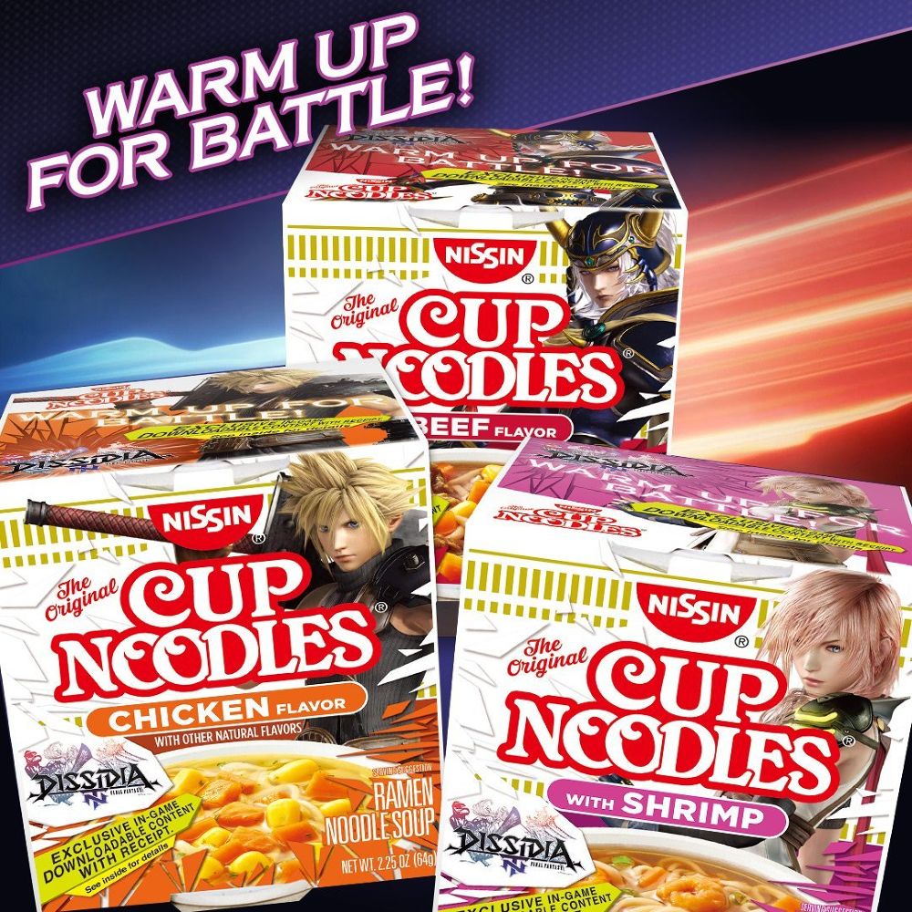 นอกจากนี้ทาง Square-Enix ร่วมกับ Nissin ออกแบบบะหมี่ถ้วนลายตัวละครจากเกม Dissidia: Final Fantasy NT ซึ่งภายในถ้วยจะมี Code ชุดตัวละครภายในเกม น่าเสียดายที่ถ้วยบะหมี่นี้วางจำหน่ายเฉพาะในโซนอเมริกาเท่านั้น  สำหรับเกม Dissidia: Final Fantasy NT มีกำหนดวางจำหน่ายบนเครื่อง PlayStation 4 ในวันที่ 11 มกราคมในโซนญี่ปุ่น และ วันที่ 30 มกราคมในโซนอเมริกาและยุโรป