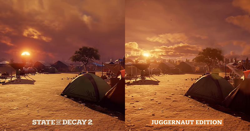 เมื่อล่าสุดทางทีมพัฒนา Undead Labs ได้ปล่อยคลิปวิดีโอเปรียบเทียบฉากต่อฉากของ State of Decay 2: Juggernaut Edition (ฉบับ Remastered) และ State of Decay 2 (ตัวเกมต้นฉบับ) ออกมาให้เพื่อนๆ ทุกคนได้รับชมกัน โดยจะสังเกตเห็นว่าสิ่งที่ถูกเปลี่ยนแปลงไปมากที่สุดนั้น นั้นก็คือ "รายละเอียดแสงเงา" กับ "การลงสีฉากพื้นหลัง" ดูมีความสมจริงขึ้นกว่าเก่า แถมยังลงรายละเอียดเบื้องลึกเบื้องหลังได้เยอะมากๆ แม้ส่วนตัวจะแอบเสียดายที่โมเดลตัวละครและซอมบี้ไม่ต่างจากเดิมเท่าไหร่ก็ตาม แต่เพียงเท่านี้มันก็คงเพียงพอแล้วสำหรับการ Remastered ของตัวเกมทีี่มีอายุถึง 2 ปี ว่าแล้วเราก็ไปรับชมคลิปวิดีโอดังกล่าวกันเลยดีกว่า
