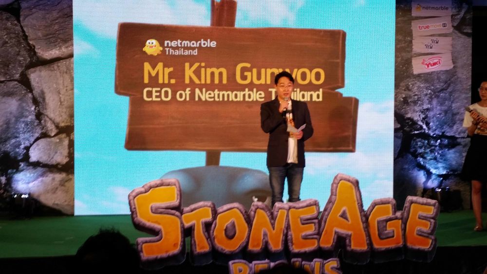 คุณคิมกันวูประธานกรรมการผู้บริหารใหญ่บริษัทเนตมาร์เบิ้ล ไทยแลนด์ จำกัด ได้กล่าวขอบคุณสื่อมวลชนและผู้เล่นที่มาร่วมงานแถลงข่าวเปิดตัวเกม Stone Age Begins นี้ เขาจะพยายามอย่างเต็มที่เพื่อเตรียมโปรโมชั่นให้ผู้เล่นชาวไทยได้สนุกไปกับเกมมากยิ่งขึ้นและเชื่อว่าสโตนเอจ จะเป็นเกมที่ทุกๆคน ทุกเพศทุกวัยชื่นชอบ