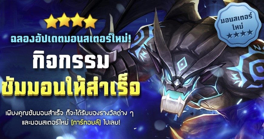 วมถึงกิจกรรม “ซัมม่อนให้สำเร็จ” ที่เมื่อทำภารกิจซัมม่อนมอนสเตอร์ 4 ดาวแท้ขึ้นไปหรือสูงกว่า ก็จะได้รับรางวัลตามขั้นที่กำหนด จนสามารถได้รับคัมภีร์การ์กอยล์ ซึ่งเป็นมอนสเตอร์ใหม่ไปฟรีๆกันเลย!