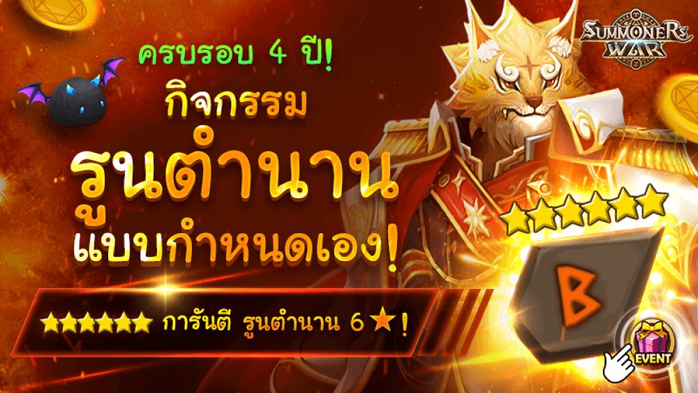 Com2uS เอาใจผู้เล่นไม่มียั้งด้วยกิจกรรมรูนตำนานแบบกำหนดเองที่ให้สร้างรูนตำนาน 6★ ได้ดังใจ พ่วงด้วยกิจกรรมเหรียญพิเศษรับ 4 ปีที่ให้แลกเหรียญเป็นไอเทมได้มากมาย!