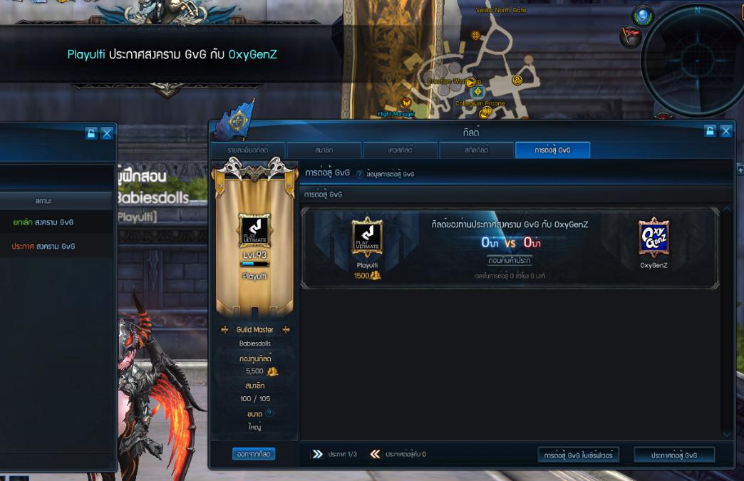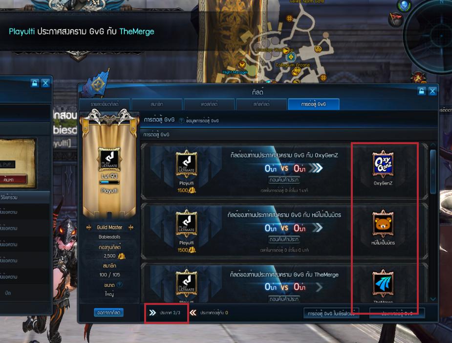 สามารถใส่ชื่อกิลด์ที่อยากจะสู้ด้วยได้เลยทันที และกดประกาศต่อสู้ได้เลยเมื่อต้องการ