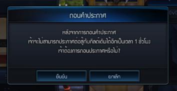 สามารถยกเลิกสงครามได้ตลอดเวลา และจะไม่สามารถท้าสู้กิลด์เดิมได้เป็นเวลา 1 ชม.