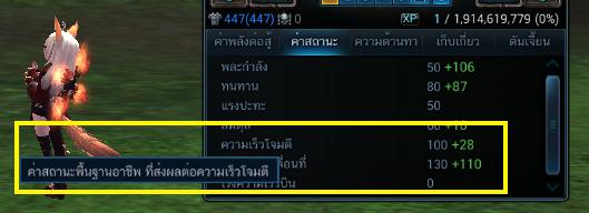 Strong Canephora Potion - เพิ่มควมเสียหายมากขึ้น 15%ข้อที่ 5 ความเร็วในการโจมตีมีผลกับหลายสิ่งความเร็วในการโจมตีในเกมนี้แสดงผลได้หลายอย่าง เช่น- การร่ายสกิล ขณะร่ายจะดูเร็วขึ้นเช่น การชุบชีวิต, Meteor Strike- การชาร์จสกิล (เวลาชาร์จจะเป็นหลอดสกิลนั้นล่ะ) เช่น Thunder Strike, Cyclone- การออกท่าทางการโจมตี ไม่ว่าจะเป็นการโจมตีธรรมดา หรือการออกสกิลทำให้ดูเร็วขึ้น ปล.ฮีลเร็วขึ้นด้วยนะ- การใช้สกิลประเภทหลบหลีกต่าง ๆ จำพวกสกิลกลิ้งหลบ จะทำได้เร็วขึ้นแต่ระยะเวลา I-Frame ก็จะสั้นลงไปด้วยข้อที่ 6 สกิลประเภทหลบหลีกมีหลายแบบ