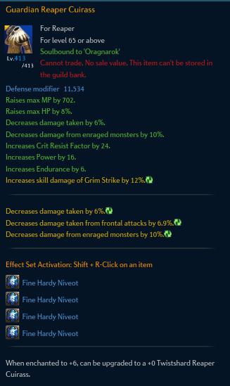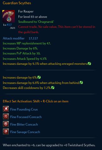 Reaper จะเน้นของสวมใส่ไปที่ค่าคริติคอลเกือบทั้งหมด เพื่อให้มีโอกาสติดคริสูงสุด เพราะอาชีพนี้ทำดาเมจได้ต่อเนื่องมาก ๆ และยิ่งอยู่ในช่วงใช้สกิล Shadow Reaping จะต่อสกิลได้แบบรวดเร็วรุนแรงมาก ๆ เลยเน้นไปที่การติดคริดีที่สุดครับ