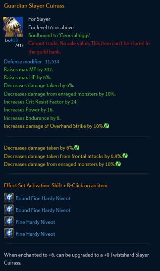 สำหรับของสวมใส่อาชีพ Slayer ให้เน้นไปที่ค่าคริติคอลครับ เพราะสกิลการโจมตีแต่ละครั้งของคลาสนี้จะเป็น One Hit ถ้าไม่ติดคริเลยจะเบามาก ๆ ส่วนการเลือกออพชั่นจะเหมือนของสาย DPS ทั่วไปครับ มีแค่เสื้อที่เราจะใช้ออพชั่น Overhand Strike ลองไปดูภาพประกอบและคำอธิบายกันได้เลยจ้า