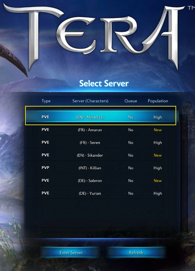 A : TERA EU ครับ คนไทยส่วนใหญ่อยู่กันที่ Sv.Mystel