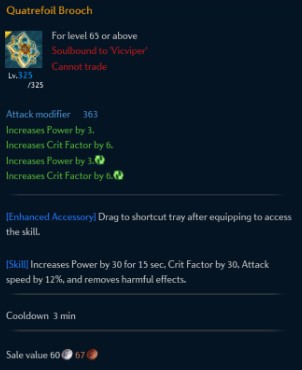 Sniper's Eye : เพิ่ม Power 30, Attack Speed, Movement Speed 16 เพิ่มดาเมจกับมอนสเตอร์ 7%