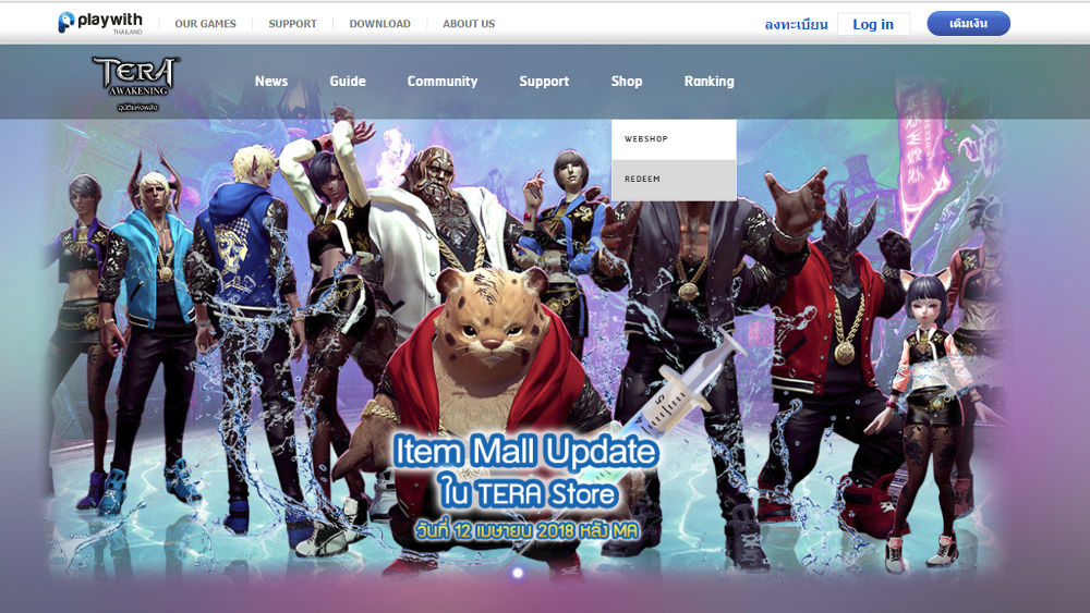 ขั้นตอนที่ 1 : เข้าสู่เวปไซด์ http://tera.playwith.in.th เลือกปุ่มล๊อกอิน Login เพื่อเข้าสู่ระบบ