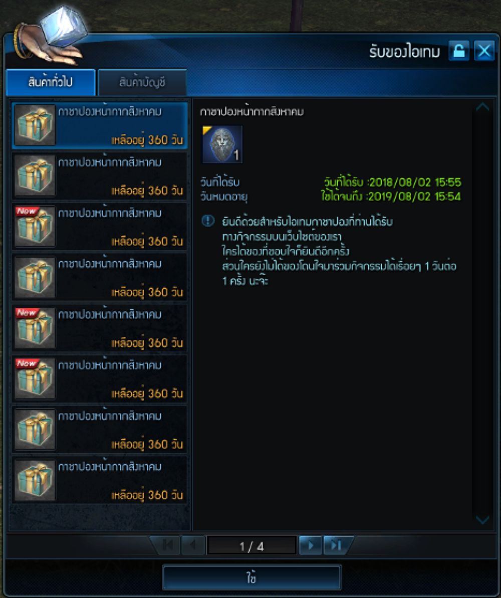 ***หมายเหตุ*** 1 บัญชี สามารถกดรับไอเทมได้เพียง 1 ครั้ง เท่านั้น!!