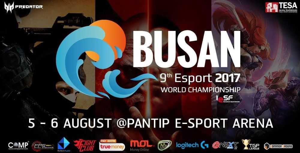 สำหรับการแข่งขัน BUSAN 9th E-Sport 2017 World Championship ในครั้งนี้ มีประเทศที่เป็นสมาชิกสมาพันธ์อีสปอร์ตโลก (IeSF) ส่งนักกีฬาเข้าร่วมการแข่งขันกว่า 40 ประเทศซึ่งประเทศไทยเป็นหนึ่งในนั้น โดยจะมีการจัดการแข่งขันเพื่อคัดเลือกตัวแทนนักกีฬาจากประเทศไทยทั้ง 3 ประเภท ในวันที่ 5 - 6 สิงหาคม 2560 นี้ภายในงาน Acer Day ณ Pantip E-Sport Arena, พันธุ์ทิพย์พลาซ่าประตูน้ำ