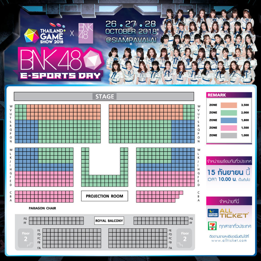 เรียกได้ว่าจัดเต็มตลอด 3 วันกันเลยทีเดยีวครับสำหรับแฟนๆ BNK48 ซึ่งใครที่กลัวว่างานนี้จะทำให้คนล้นงานหรือ เพราะธรรมดาคนก็เยอะอยู่แล้ว แต่ไม่ต้องห่วงครับ เพราะแมทช์นี้ต้องจ่ายเงินเข้าไปชมเป็นพิเศษในโรงภาพยนตร์ที่ใหญ่ที่สุดของสยามพารากอนอย่างสยามภาวลัยที่จุที่นั่งได้กว่า 1,200 คนเลยทีเดียว โดยการจะเข้าไปชมนั้นต้องซื้อบัตรแยกพิเศษตั้งแต่ราคา 1,000/1,500/1,800/2,000/3,500 บาท ตามลำดับ - ราคาบัตรนี้ต่อ 1 รอบการแสดงเท่านั้น