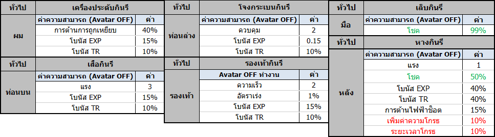 ชุดและ Stat เริ่มต้นของ “กินรี”