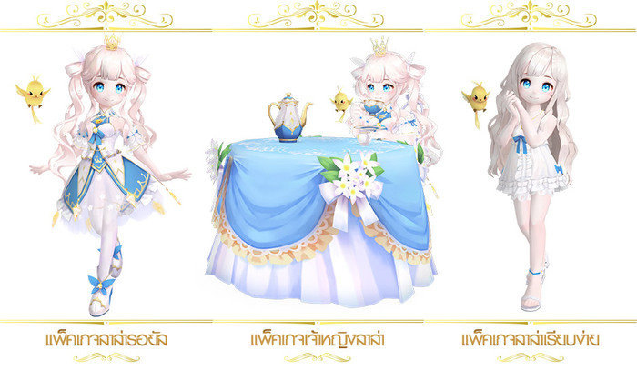 โดยสามารถซื้อแพ็คเกจได้ที่ร้านค้าในเกมตั้งแต่วันนี้ – 1 ตุลาคม 2562 เท่านั้น โดยเมื่อกดซื้อแพ็คเกจในช่วง Pre-Order จะได้รับเป็น “บัตรเชิญ” และไอเทมของแถมตามรายการ จากนั้นจะได้รับไอเทมทั้งหมดและได้เล่นตัวละคร เจ้าหญิงลาล่า ก่อนใครตั้งแต่วันที่ 1 ตุลาคม 2562 เป็นต้นไป ดูรายละเอียดไอเทมแต่ละแพ็คเกจได้ที่