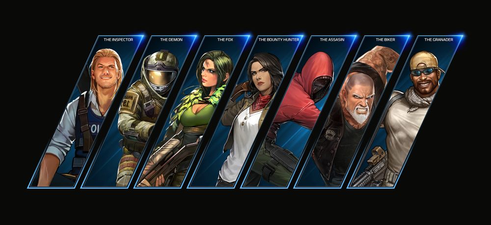 นอกจากนี้ ยังมี The Bounty Hunter ที่สามารถยิงได้อย่างต่อเนื่องโดยไม่มีคูลดาวน์ แต่คุณต้องยิงอย่างระมัดระวัง เพราะตัวละครตัวนี้มีกระสุนติดตัวแค่ 2 นัดเท่านั้น! ฉะนั้น ยิ่งคุณยิงเยอะๆ คุณก็จะต้องเสียเวลา reload กระสุนบ่อยๆ นั่นเอง และตัวละครสุดท้าย The Biker เป็นตัวละครโจมตีระยะใกล้ ยิงศัตรูด้วย shotgun หรือปืนสั้น ครั้งเดียวถึงตาย!