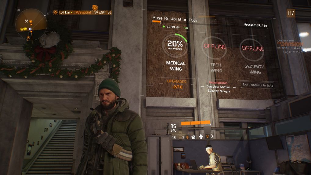 ส่วนของ Medical Wing ก็มี Perk ที่เป็นประโยชน์กับคุณเช่นเดียวกัน เริ่มต้นจากการอัพทั้ง Clinic และ Quarantine เพื่อรับ Mod Recon Pack ซึ่งช่วยเพิ่มระยะของทักษะ Pulse เพื่อช่วยในการบอกตำแหน่งของศัตรู และ จุด Loot ต่าง ๆ ให้แม่นยำมากขึ้น ตามมาด้วย Virus Lab และ Hazmat Unit ที่จะปลดล๊อค Mod "Support Station : Life Support" ซึ่งจะเพิ่มทักษะใหม่ในการโยน / วาง Revivial Station ที่คอยช่วยรักษาเพื่อนร่วมทีมของคุณที่พลาดท่าจนล้ม (Downed) ภายใต้ระยะการแสดงผลอย่างอัตโนมัติ เป็นอีก 1 ทักษะที่สำคัญมาก ๆ เมื่อต้องเล่นเป็นทีม คุณจะต้องการมันแน่ ๆ เพราะมันจะค่อยช่วยเหลือทีมของคุณในสถานการณ์หน้าสิ่วหน้าขวานที่เสี่ยงต่อการตายยกกลุ่มอย่างเช่น การวิ่งฝ่าดงกระสุนไปช่วยเพื่อนที่กำลังล้มอยู่ ทักษะนี้จะช่วยให้คุณสามารถช่วยเพื่อนร่วมทีมคนนั้นได้ โดยที่ตัวคุณไม่ต้องเข้าไปเสี่ยงล้มลงไปนอนเคียงข้างกับเขา