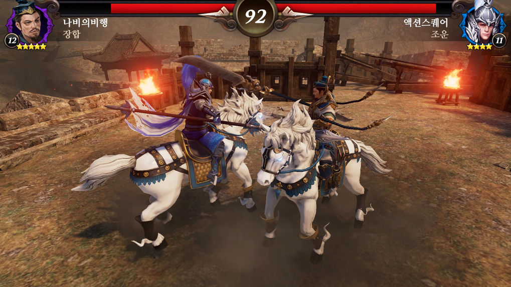 ผมคือหนึ่งในคนที่เบื่อเกมแนวจีนมากที่สุดคนหนึ่งเลยก็ว่าได้ แต่สำหรับเกม Three Kingdoms Blade ผมกลับไม่รู้สึกอย่างนั้นเลย เพราะสิ่งที่ผมเห็นจากเกมตัวนี้และประทับใจเอามากๆ ก็คือกราฟฟิกของตัวเกมที่ได้ออกแบบมาได้อย่างยอดเยี่ยม ไม่ว่าจะเป็นเหล่าตัวละครต่างๆ ที่คงเอกลักษณ์ไว้ได้อย่างไร้ที่ติ ท่วงท่าที่ดุดันและสง่างามจนไม่อาจละสายตาได้ จนรวมไปถึงเอฟเฟคที่เรียกได้ว่าอลังการเหนือหลายๆ เกมในปัจจุบันไปอย่างเหนือชั้น และนอกจากเรื่องกราฟฟิกของตัวเกมแล้ว ภายในเกมยังมีระบบต่อสู้อื่นๆ เข้ามาเสริมกับระบบต่อสู้หลักอีกด้วย โดยผมของเรียกระบบต่อสู้นี้ว่า "ระบบการต่อสู้บนหลังม้า" ซึ่งจะเป็นระบบสุดเจ๋งที่จะใช้วัดพลังกันระหว่างนักรบของเราและนักรบของฝ่ายศัตรู ว่าใครคือที่สุดของสนามรบแห่งนี้