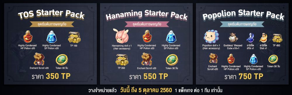 ที่ขนมาให้เหล่าผู้กล้าได้ไปช๊อปกันแบบจัดเต็ม! ขาช๊อปทุกท่านจะได้พบกับชุดเริ่มต้นการผจญภัย ซึ่งมีทั้งหมด 3 แพ็กเกจด้วยกัน โดยเหล่าผู้กล้าสามารถไป