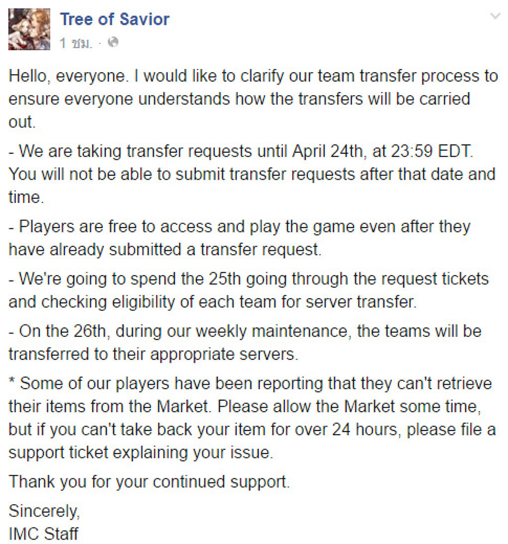 Tree of savior Steam หลังจากที่เปิดให้บริการสำหรับคนที่ซื้อ Exclusive Access มาได้ 3 สัปดาห์ก็ได้ประกาศให้สามารถลงทะเบียนย้ายเซิฟเวอร์เพื่อเข้าเล่นตามภูมิภาคของตนเองแล้วโดยรายละเอียดมีดังต่อไปนี้ครับ