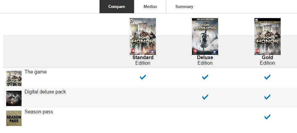 3.For Honor - Gold Edition จะได้รับแบบเดียวกันกับข้อ 2 และจะได้ตัว Season Pass เพิ่มเติมด้วย