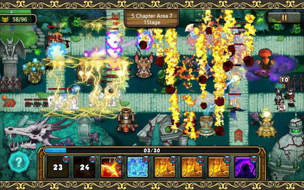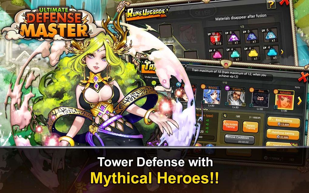 มาผสมกันได้อย่างลงตัว ซึ่งผู้เล่นต้องเลือกเทพเจ้า 8 จาก 300 ตัว ไปประจำการที่หอคอยเพื่อยิงมอนสเตอร์ ซึ่งแบ่งออกเป็น 4 ธาตุ 8 ประเภท เรียกได้ว่าวางแผนเลือกเทพเจ้าแต่ละตัวนี่ต้องคิดกันหัวหมุนเลยทีเดียว นอกจากนี้ตัวเกมยังใส่ Content อย่าง โหมดเนื้อเรื่องที่มีความเข้มข้นและ Stage ให้ฟันฝ่ากว่า 100 Stage, โหมดการอัพเกรดเทพเจ้าและปรับแต่ง Rune, ระบบ PVP Arena ที่จะได้สู้กับผู้เล่นอื่นแบบ Real Time, โหมด World Boss แบบ Real Time , และระบบ Guild ที่ช่วนสร้างปฏิสัมพันธ์ระหว่างผู้เล่น กับภาพกราฟฟิก 2D สุดสวยและเอฟเฟกที่จัดเต็มเรียกได้ว่า เป็นอีกเกมที่คอเกมวางแผนต้องชอบเป็นแน่แท้