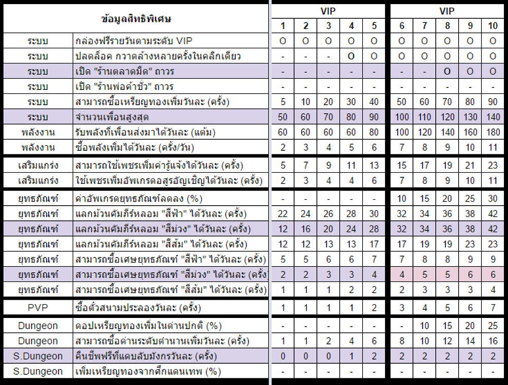 ข้อมูล VIP ระดับ 01 - 10 [คลิกดูรูปรวม]