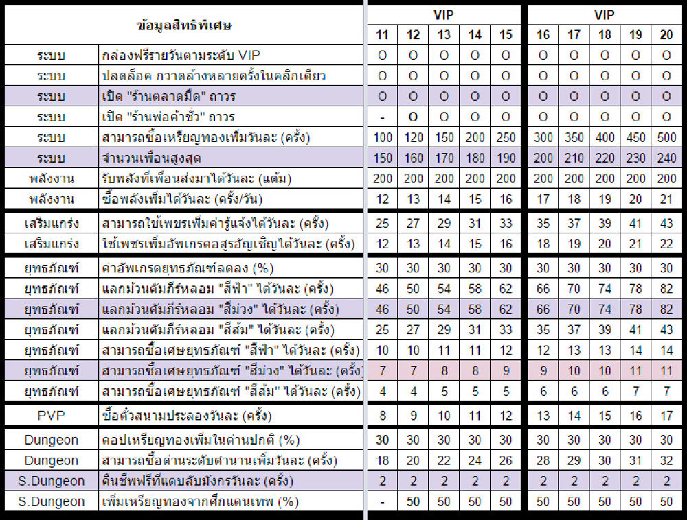 ข้อมูล VIP ระดับ 11 - 20 [คลิกดูรูปรวม]