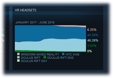 เฉพาะผู้ใช้แว่นของตนเองเท่านั้นถึงเล่นได้ อีกทั้งยังสามารถนำไปเล่นเกมใหม่ๆ บน Steam ได้อีกด้วยจึงทำให้ส่วนแบ่งของ HTC VIVE ถูกดึงไปอย่างต่อเนื่อง