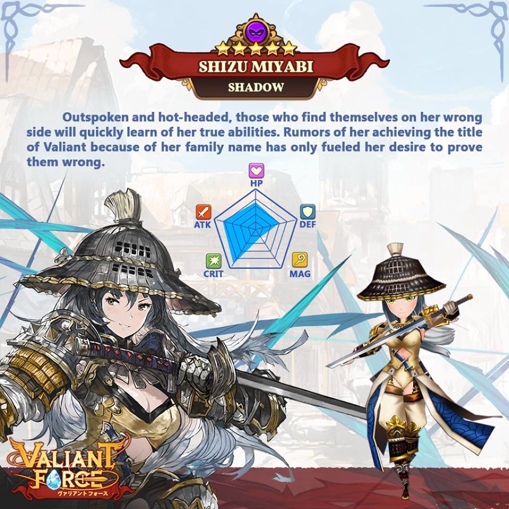ณ ตอนนี้คงไม่มีเกมมือถือตัวไหนจะร้อนแรงได้เท่ากับเกมจากประเทศสิงคโปร์อย่าง Valiant Force อีกแล้ว (รายละเอียดเพิ่มเติม) เพราะด้วยตัวเกมที่มีกราฟิกที่สวยงาม และสะดุดตาแล้ว ระบบการเล่นก็ดูน่าเล่นสุด ๆ โดยเมื่อ 2 สัปดาห์ที่แล้ว ทางค่าย  XII Braves ก็ได้ทำการปล่อยข้อมูลสายอาชีพมาให้เราได้ดูกันถึง 2 สายอันได้แก่ Guardian (รายละเอียดเพิ่มเติม) และ Mystic (รายละเอียดเพิ่มเติม) แต่มันยังไม่จบแค่นั้นเพราะอาทิตย์นี้ก็เป็นคิวของสุดยอดสายอาชีพนักฆ่าอย่าง Shadow ก็ปล่อยข้อมูลออกมามาให้เราได้ยลโฉมกันแล้ว โดยตอนนี้ตัวเกมมีกำหนดที่เปิดให้บริการในช่วงเดือนเมษายนในเซิฟเอเชียตะวันออกเฉียงใต้เป็นอันดับแรก !!!