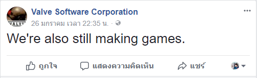 แต่แล้วเมื่อช่วงวานนี้ ทาง official page facebook ของ Valve ก็ออกมาโพสข้อความบนเฟซบุคว่า "We're also still making games." ซึ่งทำให้แฟนๆเข้าไปคอมเมนท์กันอย่างบันเทิงว่า "ไหนโชว์หน่อยสิ" "ไอ้เกมสร้างสะพานห่วยๆนั่นน่ะนะ!" (หมายถึงเกม Bridge Constructor Portal แต่จริงๆแล้วเกมนี้ไม่ได้พัฒนาโดย Valve แค่เอาชื่อ Portal ไปใช้) บ้างก็จินตนาการกันไปต่างๆนาๆ แต่หากมานั่งคิดดูดีๆ ประโยคนี้ตีความได้สองแบบนั่นคือ "พวกเรากำลังสร้างเกมใหม่กันอยู่" นั่นคืออาจจะแง้มเป็นนัยๆว่าตอนนี้สตูดิโอพวกเขาเนี่ย กำลังพัฒนาเกมใหม่กันอยู่นะ แต่ในอีกแง่หนึ่งก็คือเป็นแค่มุขหยอกกันเล่นเพราะมันแปลอีกนัยหนึ่งได้ว่า "พวกเรายังคงเป็นบริษัทสร้างเกมอยู่" แบบนี้ก็ได้เช่นกัน แต่เชื่อเถอะว่าถ้าเจตนาของ Valve เป็นอย่างหลัง ก็อาจจะมีโอกาสที่พวกเขาจะพัฒนาเกมใหม่อยู่บ้างไม่มากก็น้อยเลยทีเดียว