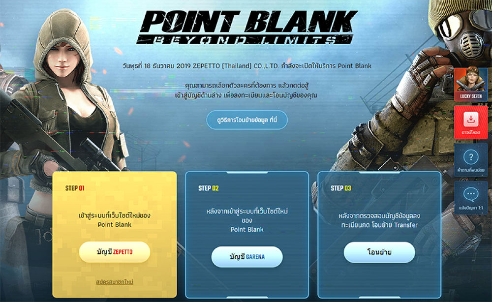 สำหรับผู้เล่นเก่า ที่มี ID เกม Point Blank เดิมอยู่แล้ว สามารถเข้าไปสมัคร "บัญชี ZEPETTO" เพื่อโอนย้ายข้อมูลจาก "บัญชี GARENA" มาได้เลย โดยในส่วนของรายละเอียดการโอนย้ายข้อมูลนั้น สามารถเข้าไปอ่านได้ที่หน้า Website : https://pointblank.zepetto.com/th/teaser/index